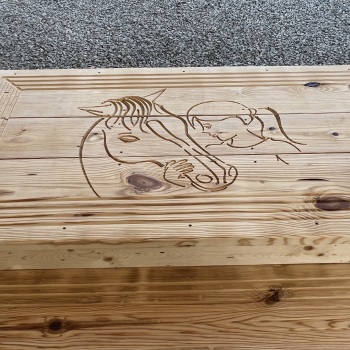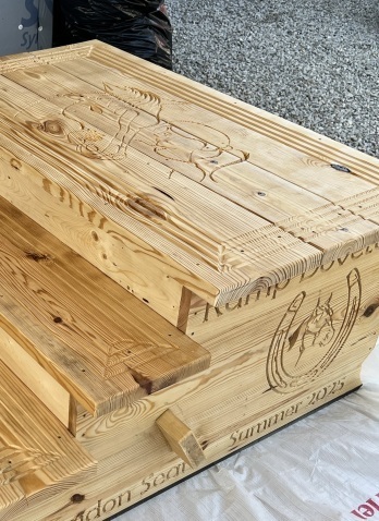 My son Brendon and I designed, built and donated these to the program. They are coated with three coats of sealer and will always be stored inside of a barn. Expected life is 100 years. We made them with personal statements carved into them so they would likely not be stolen again.
